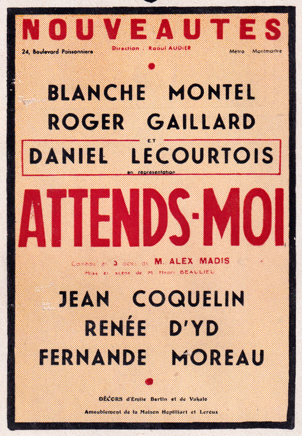 | Production | Théâtre des Nouveautés (Paris) |
