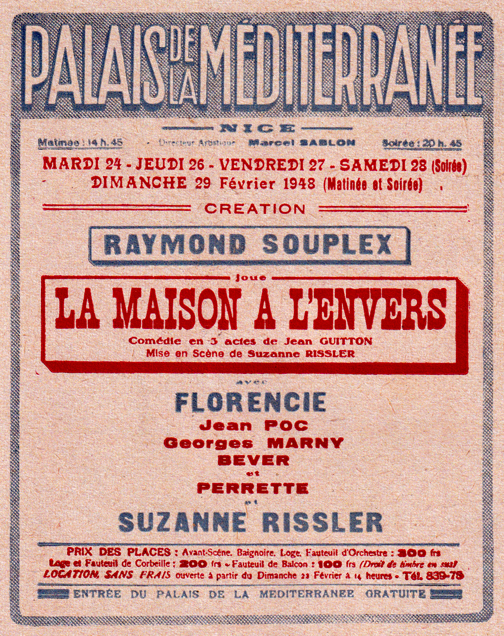 | Production | Théâtre du Palais de la Méditerranée (Nice) |