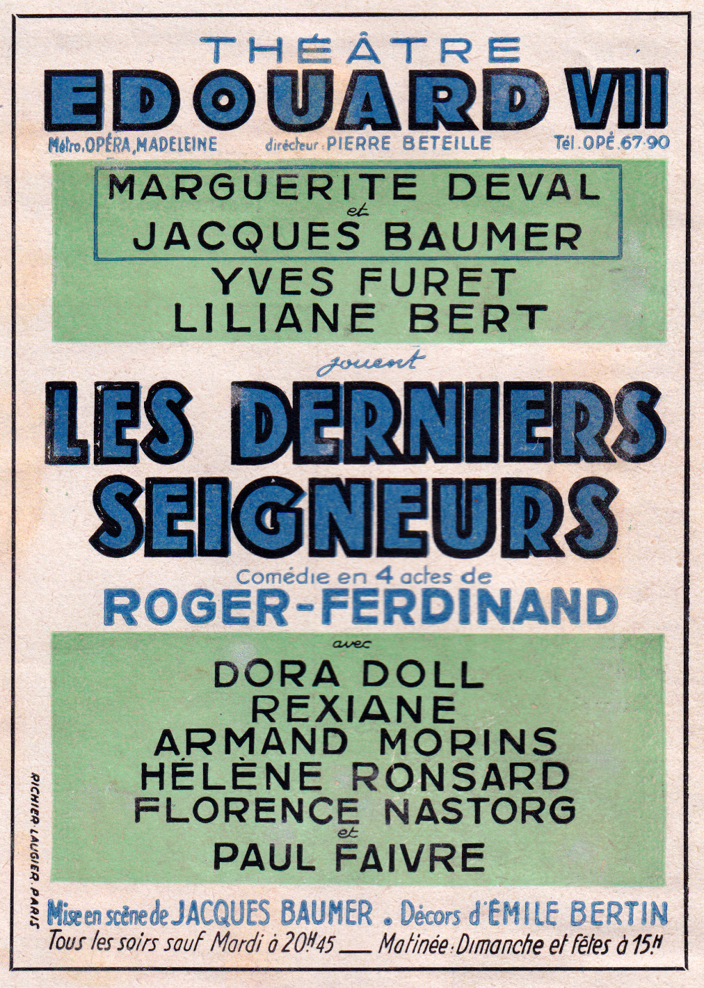 | Interprétation | Jacques Baumer (Honoré, maître d’hôtel héroïque, bourru mais bienfaisant, 55 ans) |