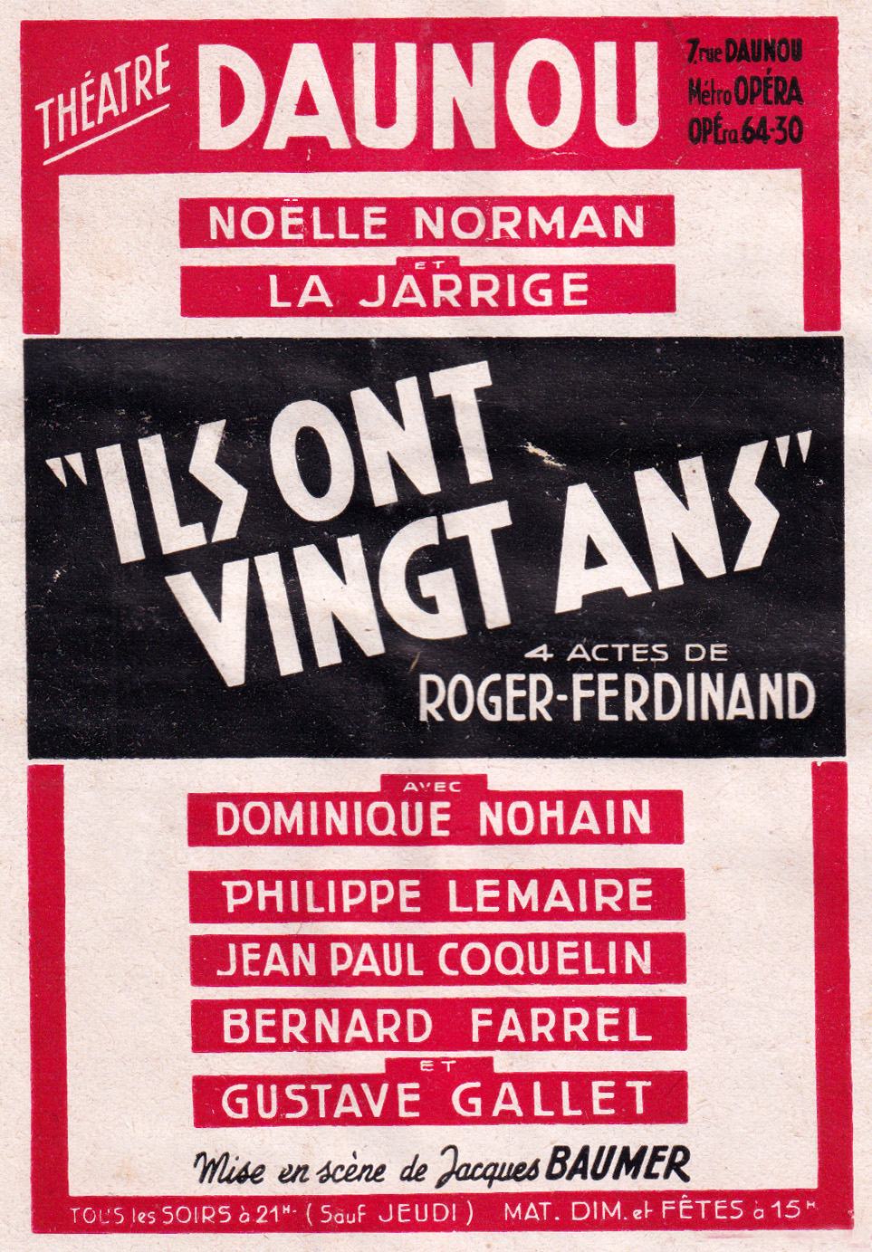 | Mise en scène | Jacques Baumer |