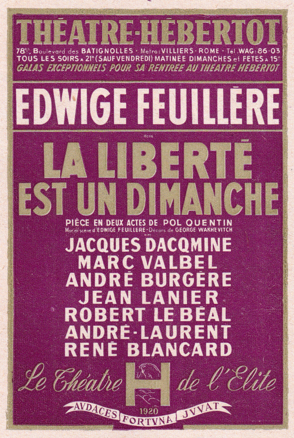 | Mise en scène | Edwige Feuillère |